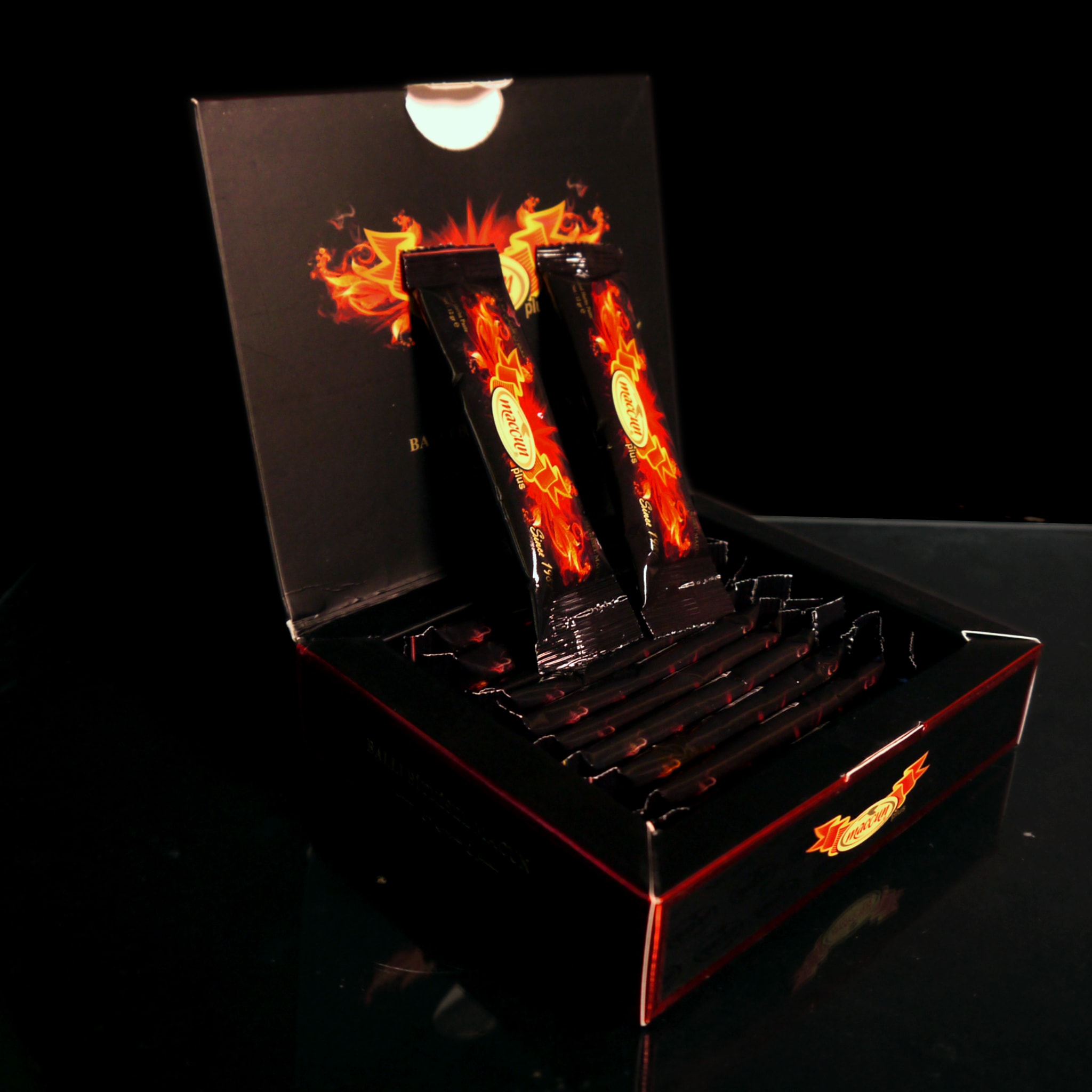 Glucose syrup, Straine flower honey, Mulberry molasses, Pollen, Epimedium sp. (0,79%), Carob, Oat, Ginger, Lesser galangal, Cinnamon, Maca, American ginseng, Nettle, Siberian ginseng, Ginkgo biloba, Red Ginseng, Pumpkin, Tribilus Terrestris, Cola nut, Vanilla flavor, Royal jelly.